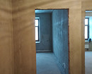 Рельефные гипсовые панели украсили часть стен над верхними шкафами кухонного гарнитура. В прихожей же одна из стен оформлена шпонированной панелью. Таким же образом отделана стена со стеллажом и дверью в спальне.