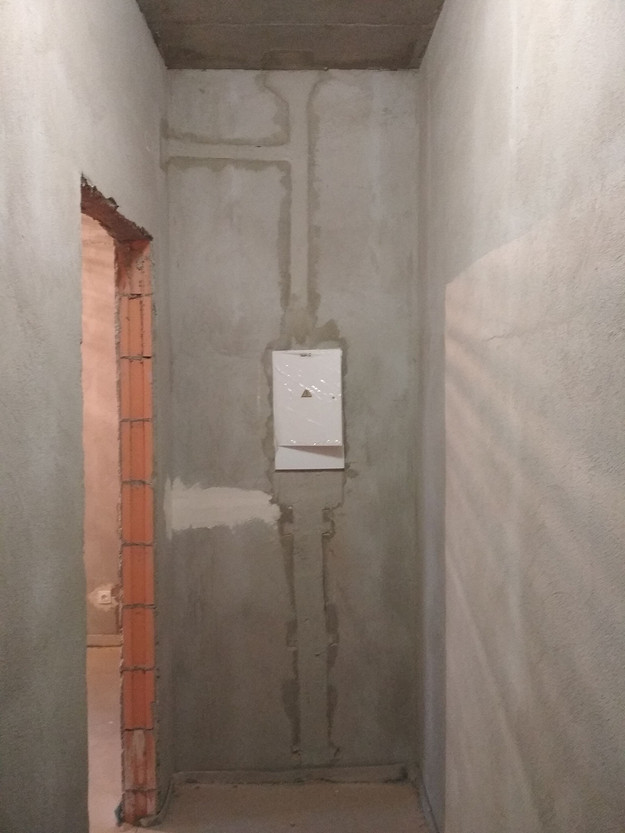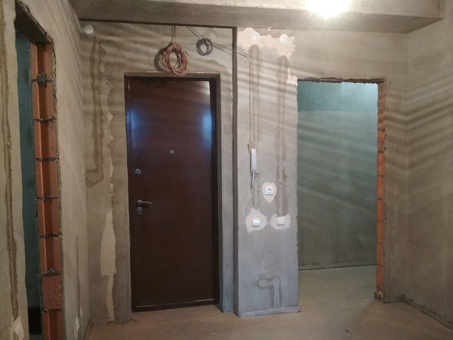 В изначальной планировке была предусмотрена отдельная спальня, кухня-гостиная, санузел, гардеробная и маленькая вытянутая кладовая. Перепланировка коснулась зоны прихожей, гардеробной и кладовой. Кухня-гостиная и санузел остались в своих границах.