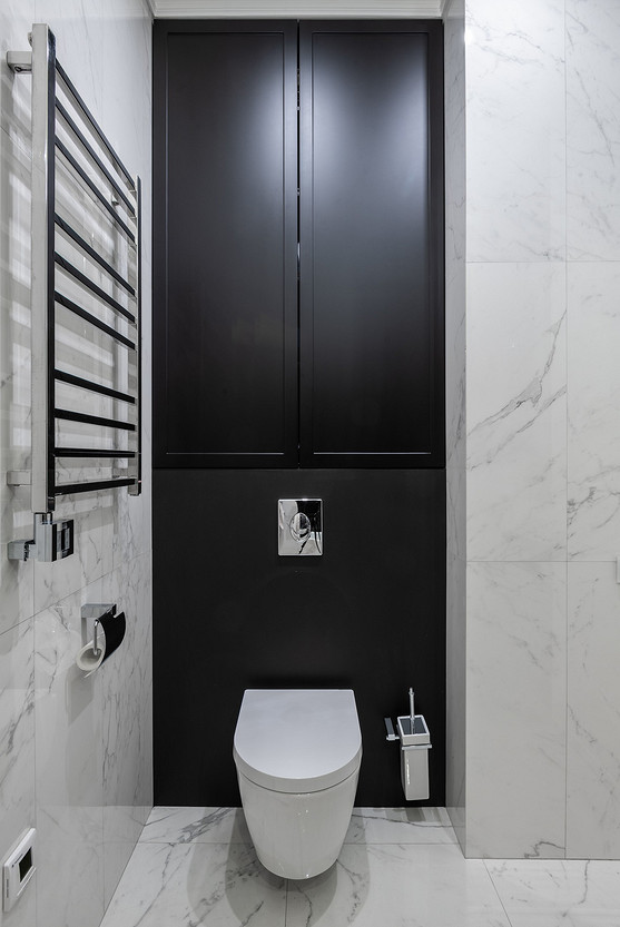 Основную нагрузку по хранению берет на себя гардеробная, но в спальне и гостиной, а также в прихожей предусмотрены шкафы.