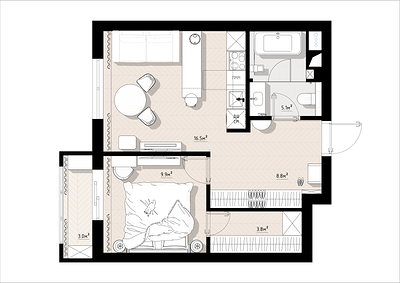 Интерьер мечты для взрослой семейной пары: квартира 47 кв. м, где продумано все до мелочей
