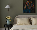 Для отделки стен выбрали обои с эффектом окрашенных стен — это позволило сэкономить на трудоемкой подготовке стен под покраску. Среди однотонных обоев выбрали сложные оттенки: молочный бежевый в кухне-гостиной и коридоре, глубокий синий — в прихожей, приглушенный зеленый — в спальне и светлый серый в кабинете.