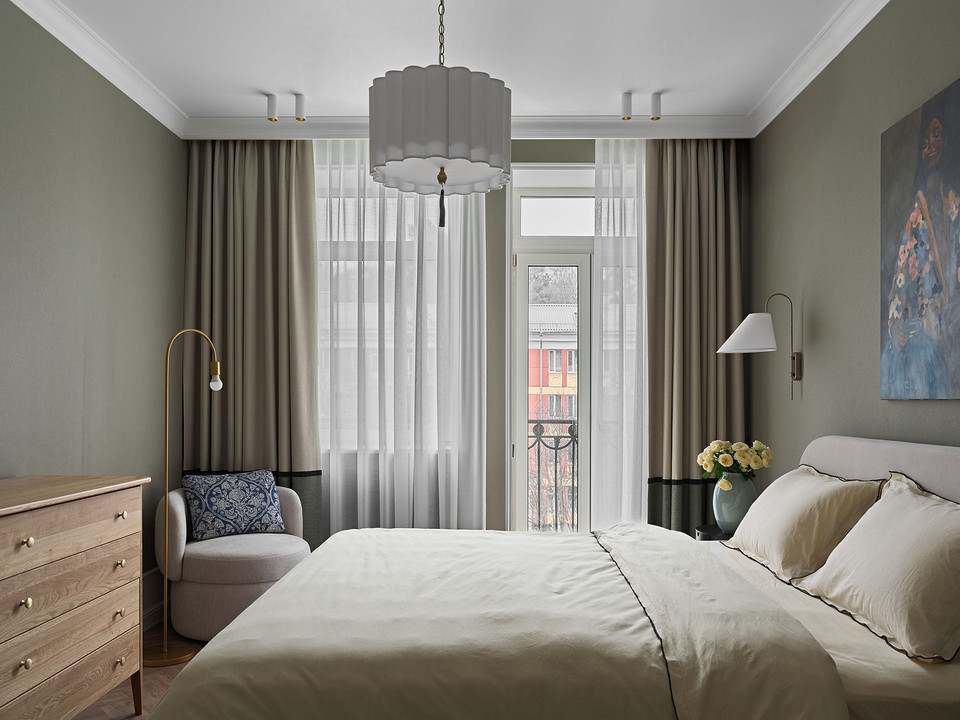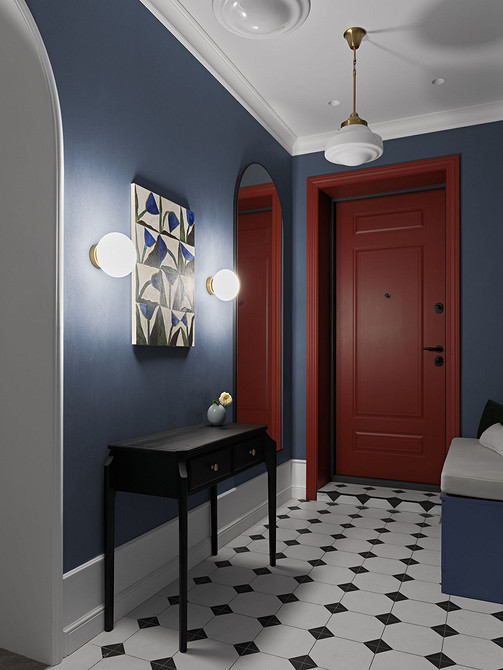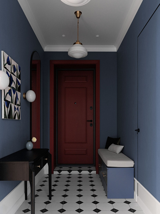 Дизайнеры продумали разные сценарии света: от точечных светильников до декоративных бра и люстр. Кроме современных светильников выбирали и ретромодели, например, подвесы в прихожей.