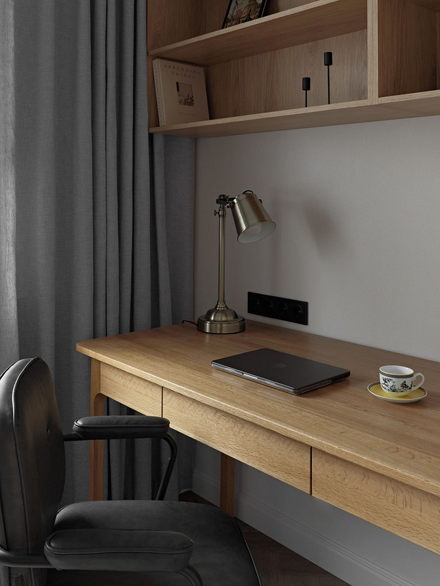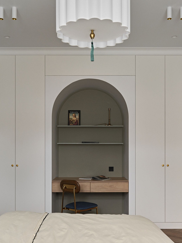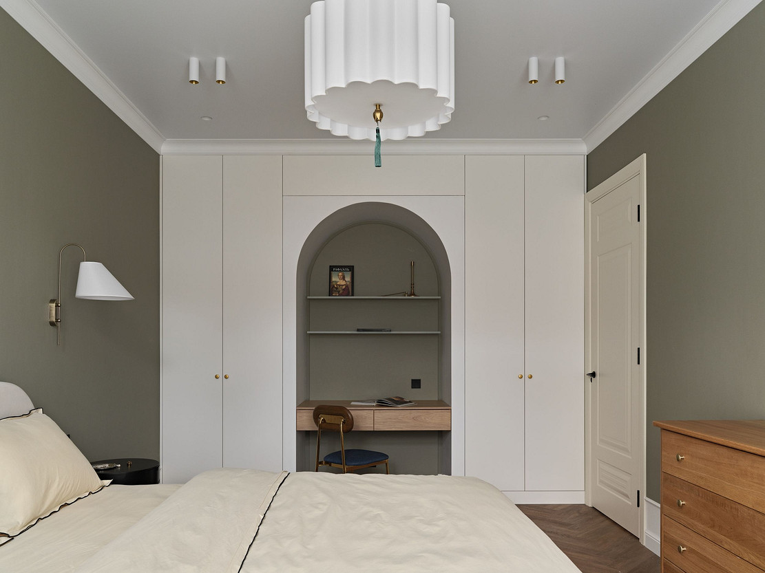 В спальне — встроенный шкаф с нишей под рабочий стол.