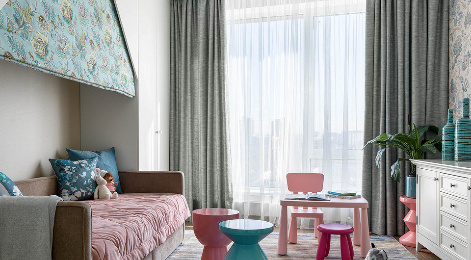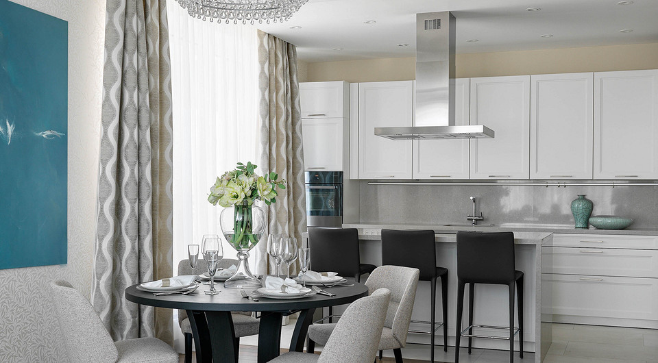Квартира для большой семьи: современная классика в серо-голубой гамме