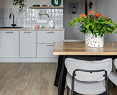 Дальше по коридору — хозяйственный шкаф с местом для ведра, швабры, веника и прочих нужных бытовых вещей. «Я специально спроектировала шкафы так, чтобы было видно деревянные торцы корпуса. А сами фасады — из ЛДСП белого цвета. Мне кажется, эти «деревянные» рамки очень оживляют», — отмечает Ирина.