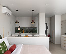 Напротив размещен полуостров-барная стойка, в торце предусмотрена ниша для хранения чемоданов.