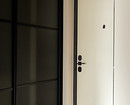Основная система хранения расположена в прихожей — это гардеробный шкаф, которые разделен на секции. В той, что ближе ко входу, спрятан щиток, роутер, а также сделаны полки для обуви, чтобы можно было ее туда спрятать и не создавать хаос в прихожей. Вторая секция спланирована многофункциональной — здесь поместится и одежда, и гладильная доска, и чемоданы.