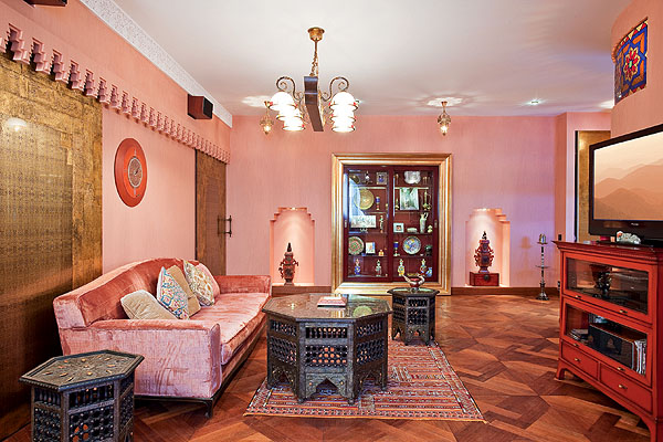 Сложно было даже предположить, что в современной городской квартире удастся создать такой живописный и интригующий образ Марокко. Обычно этнические мотивы стилизуют с помощью нескольких характерных предметов и ярких цветов текстиля. Здесь же почти всюду этника разработана очень подробно и присутствует как целостная среда (правда, не во всем совпадающая с «буквой» первоисточника).