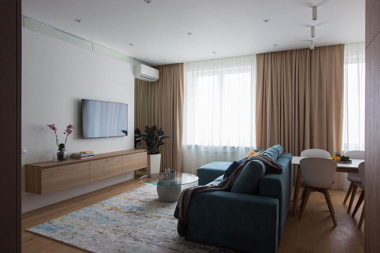 Молодая успешная женщина обратилась к дизайнеру Ольге Поваровой для того, чтобы оформить просторную двухкомнатную квартиру. Заказчица хотела максимально комфортный интерьер. В это понятие она вкладывала эргономику, функционал и минимализм. Также требовалось создать пространство, которое не устареет со временем и останется современным на долгие годы.