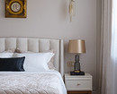 В спальне отказались от шкафа — вместо него в нишу поставили комод и разместили на стене зеркала для украшения пространства — все вещи с успехом поместились в гардеробной.