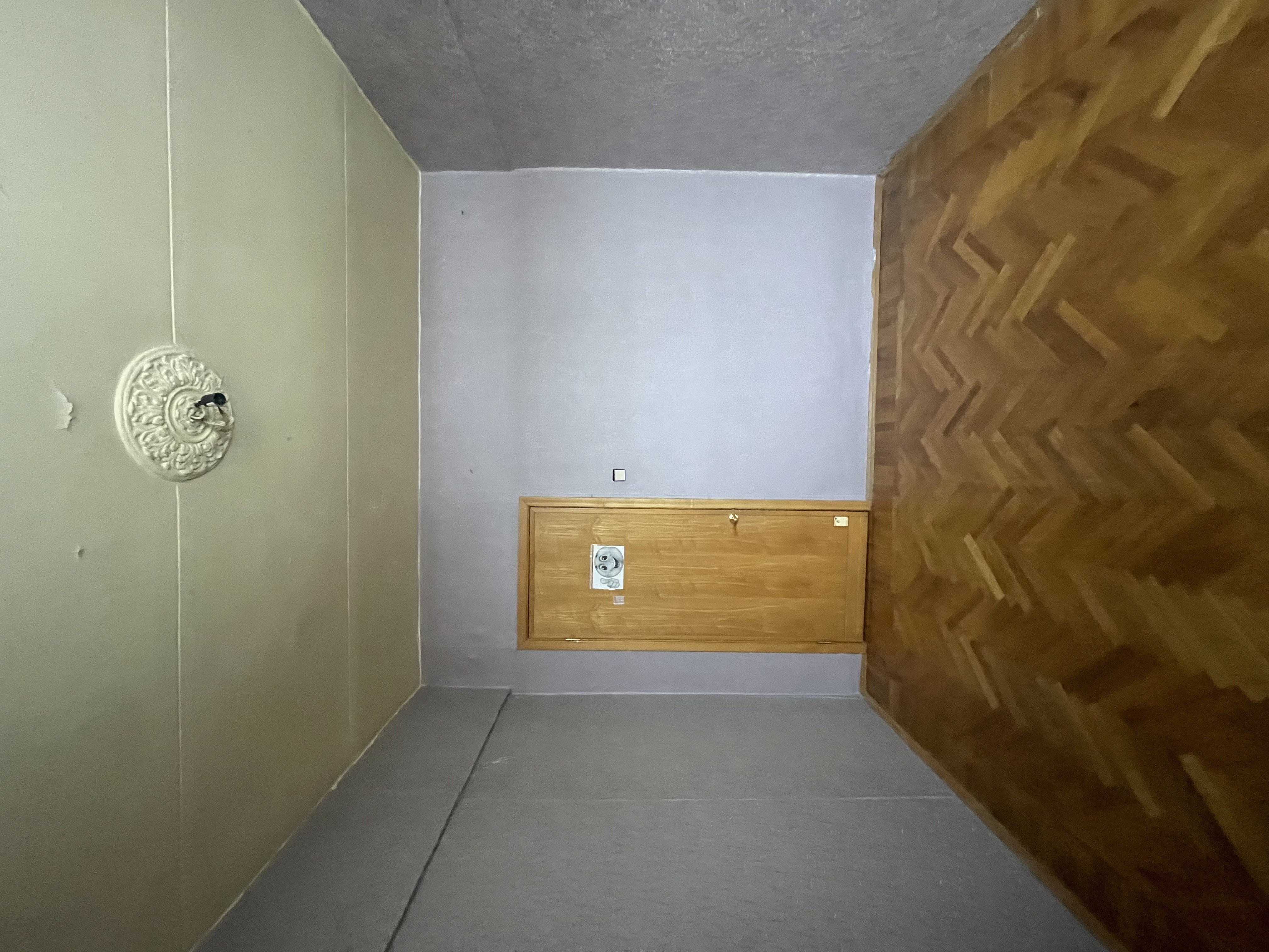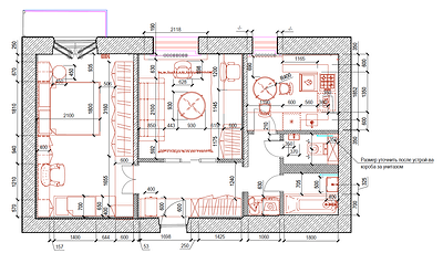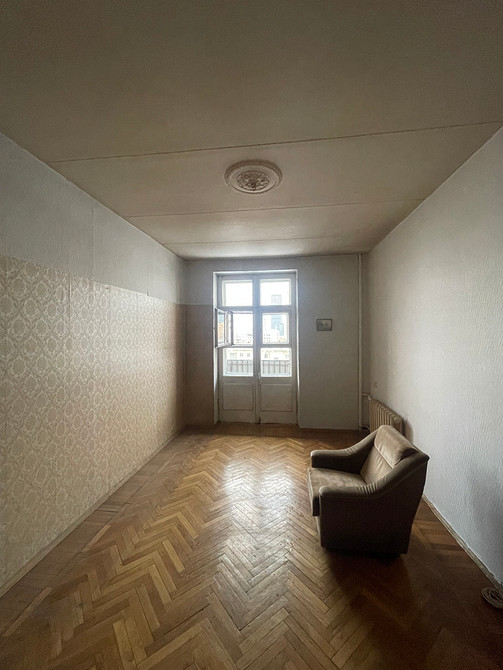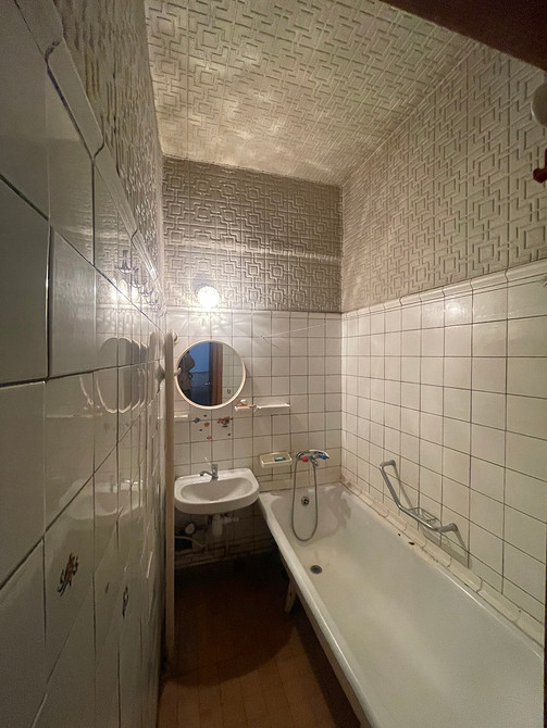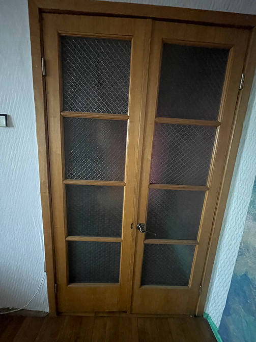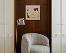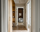 Изначальную планировку практически не меняли — даже объединить ванную и туалет, как хотели изначально, не получилось, из-за проходящих в стене общедомовых коммуникаций. Сместили только стенку между маленькой комнатой, изначально бывшей спальней, и прихожей. Это сделали для того, чтобы расширить прихожую, уместить там большой шкаф. Между комнатой и прихожей сделали большую раздвижную дверь с остеклением, чтобы естественный свет проникал во входную зону. В спальню ведет двойная распашная дверь, напоминающая о величественности классики.