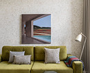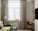 Диван в гостиной стал ярким «пятном» в спокойной по гамме комнате.