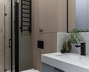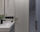 В санузле-постирочной спрятаны стиральная и сушильная машины за жалюзийными дверками, предусмотрен хозяйственный шкаф, а также тумба под раковину.