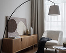 Сценарии света спроектировали стандартно для современного интерьера: основной потолочный свет и дополнительный, декоративный. В потолок встроены точечные светильники. На кухне есть скрытая подсветка, а в гостиной — торшер. В спальне предусмотрены минималистичные бра для вечернего света, а за атмосферу отвечает люстра с плетеными абажурами.
