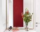 Для реализации задуманного архитектор решила использовать молочные, светлые оттенки как основные (дающие ощущение простора и свежести) и дополнить их энергичными, насыщенными цветами бургундского вина и красно-коричневого коралла. Место для для них нашлось не самое стандартное — на классических потолочных карнизах. Покрасили и часть стены под ними, чтобы сгладить резкую границу между стеной и потолком.