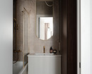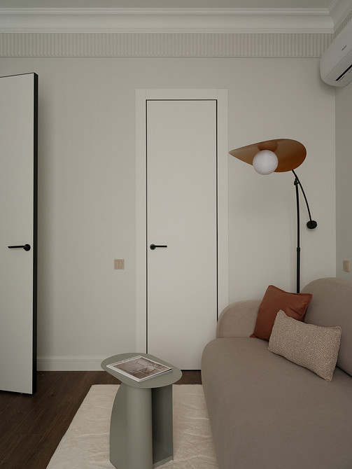 Дизайнер Евгения Петренко работала по заказу флипперов. Елена Матюхова и Ольга Хакимова обратились к Евгении с запросом на создание стильного, запоминающегося интерьера, который привлечет покупателей. «Мы сразу нашли общий язык и быстро приступили к работе над проектом, — вспоминает Евгения. — Среди задач было: обязательно гардеробная, лучше две; два санузла (отдельный приватный санузел при главной спальне); дополнительная комната, которая смогла бы трансформироваться в детскую».