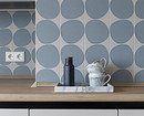 Текстиль подбирали тщательно, привлекая дизайнера по текстилю и заказчика. Так, шторы стали удачным дополнением всего интерьера. В помещениях использованы римские шторы, но из разных тканей. В кухне-гостиной узор вторит голубым кругам на фартуке, в спальне — ткань нейтрального цвета, а в детской — шторы с фантазийный узором.