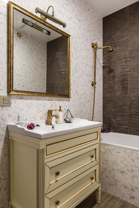 Требовалось минимизировать планировочные изменения, создать просторную и удобную среду: студию, объединяющую кухню, столовую и гостиную, две спальни (для родителей и дочери), два санузла, отдельную гардеробную. В лоджии планировалось создание зоны отдыха. В стилистике предполагались элементы классики, контемпорари, фьюжн и использование насыщенной цветовой палитры.