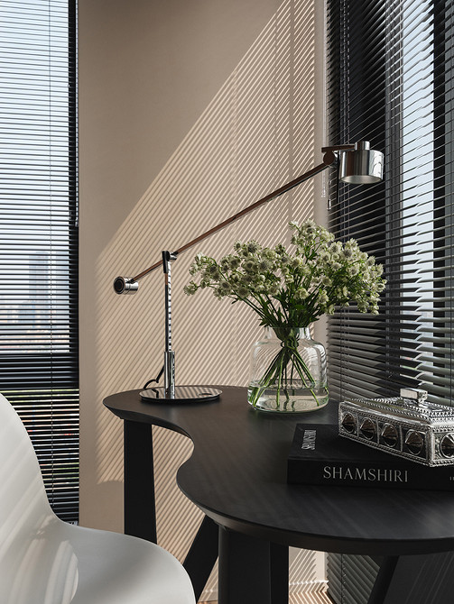 В итоге получился цельный и выразительный образ — пространство, где каждая деталь на своем месте, где можно замедлиться, оставаясь при этом в контексте большого города. В основе интерьера — спокойные природные тона, где главную роль играет фактура. Сдержанная бежево-серая цветовая гамма работает как инструмент, объединяющий пространство. Контраст создают черные детали в мебели, отделке, аксессуарах.