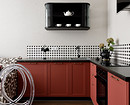Акценты дизайнер проставляла с помощью черного цвета: так, вместо верхних ящиков кухни на стене укрепили верхнюю часть винтажного буфета, декорированную черной краской. Она смотрится очень актуально вместе с узким черно-белым фартуком из мозаики.