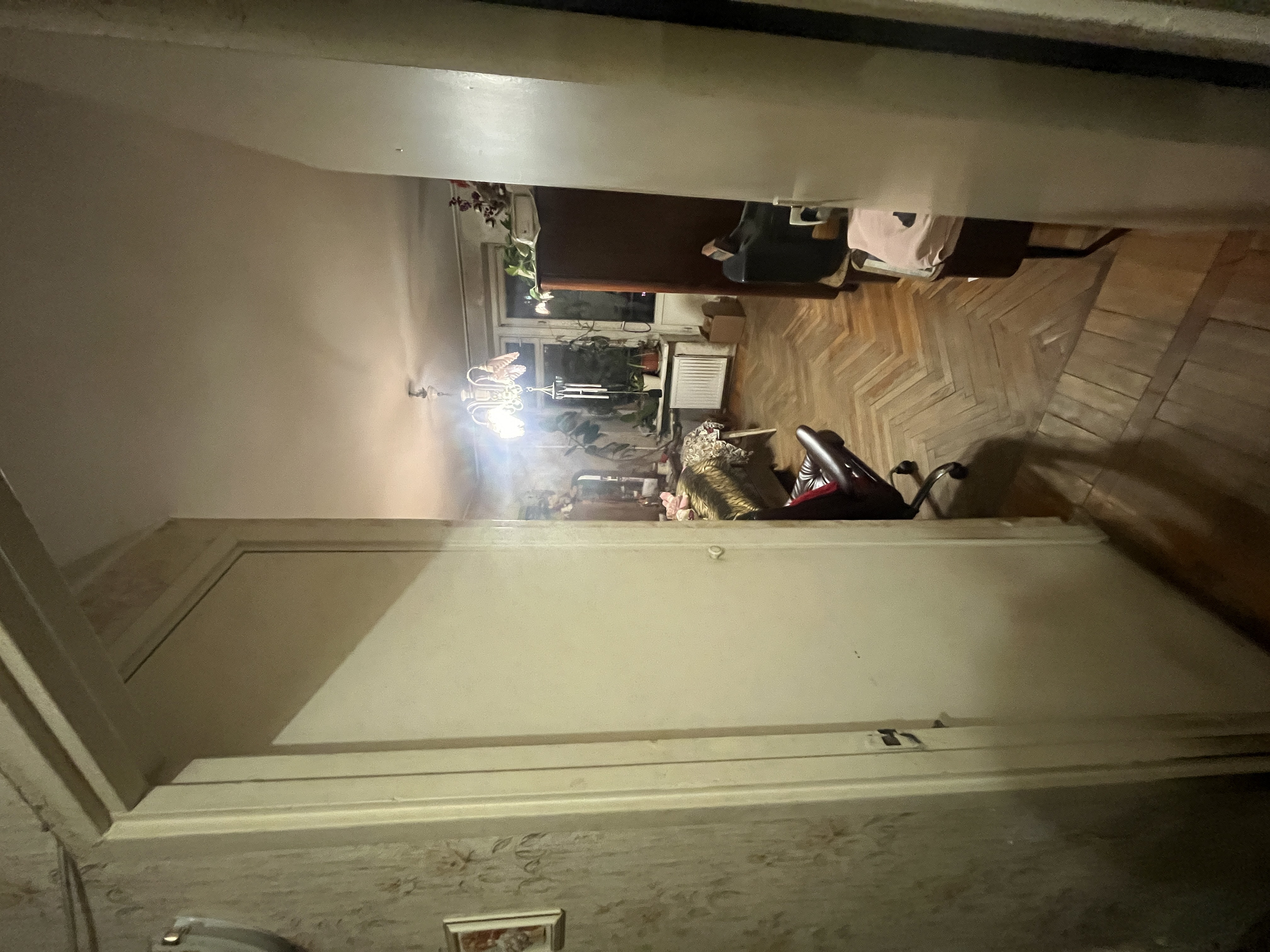 В гостиной и спальне сохранили напольный паркет: его отциклевали, заменили испорченные плашки. В прихожей и на кухне был линолеум. Теперь там уложили кварцвинил под темное дерево.