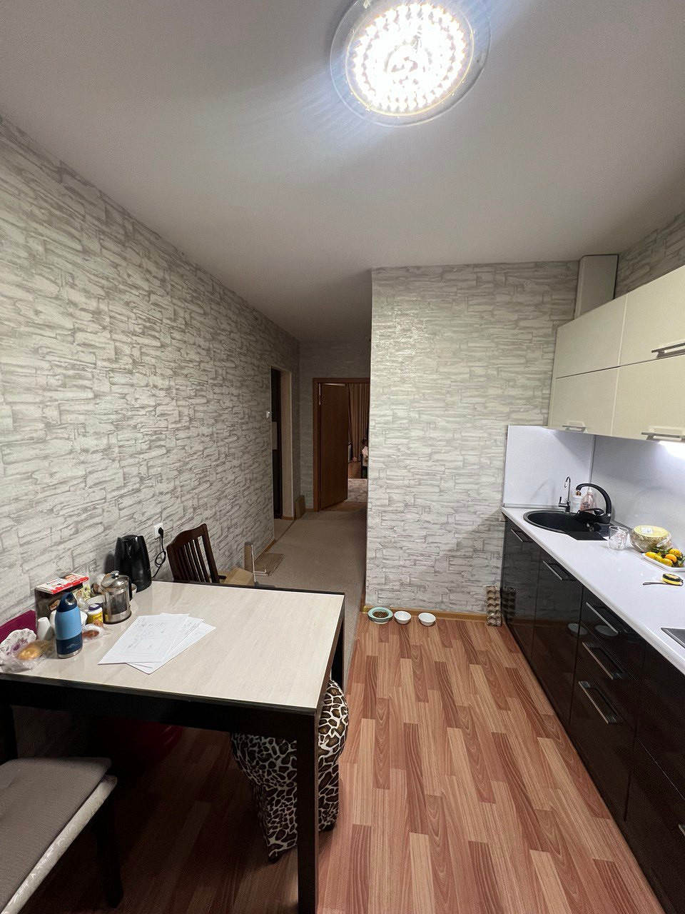 Эта квартира создавалась для женщины 55 лет, которая вышла на пенсию. Квартиру и новый интерьер хозяйке подарила ее дочь. Заказчица живет в Москве, квартира же для мамы расположена в закрытом городе недалеко от Челябинска. До этого мама заказчицы жила в деревне.