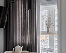 Изначальная планировка не претерпела больших изменений. Сохранили две отдельные комнаты — спальню, кабинет-гостевую. В комнате, которая была объединена с кухней проемом, сделали гостиную. Ее конфигурацию незначительно изменили, чтобы вписать со стороны прихожей встроенные шкафы. Границы ванной комнаты и санузла не меняли.