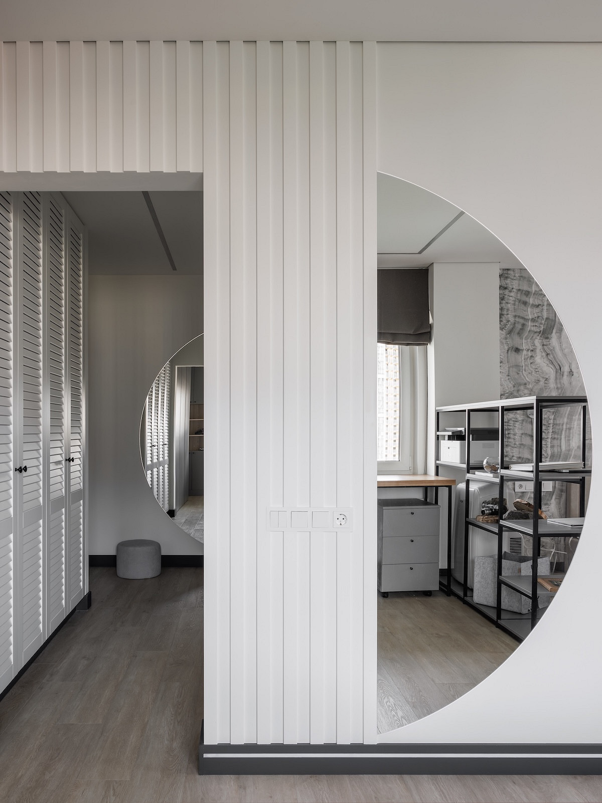 Для встройки систем хранения задействовали коридоры — они стали своеобразными гардеробными для хранения коллекций и вещей заказчиков. В коридоре даже сделали антресоли на манер тех, что встречались раньше в типовых домах советского времени.