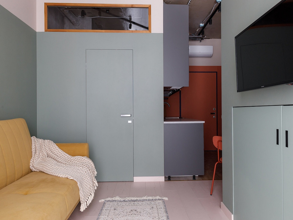 Яркие цвета и шкаф под кроватью: необычная студия 25 кв. м, в которой воплотили функции двушки