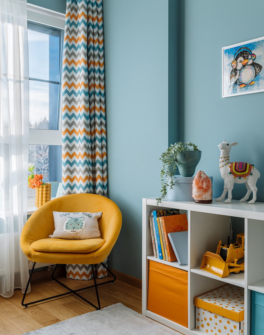 Зеленая спальня, голубая детская и малиновый санузел: квартира в Москве, в которой много цвета