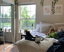 В этом интерьере оформлению кровати также было уделено достаточно внимания: белоснежное постельное белье, бежевый вязаный плед, подушки в тон ему, уместные мягкие игрушки. Без гирлянд тоже не обошлось, но дополняет их растительная растяжка по всему периметру комнаты — прекрасный способ озеленить пространство, объединив его. На стенах — распечатанные постеры без рам. Вариант, конечно, бюджетный, но выглядит по-особенному стильно. Для рабочего стола есть удобное углубление, а сам он заодно выполняет роль туалетного столика — наверху вместо полок висит зеркало необычной формы. В удачном месте оказался и встроенный зеркальный шкаф — в нем отражается окно, света в комнате прибавляется.