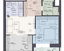 Так называют современные планировки, где жилая комната занимает немного места, а до половины всей площади отводится объединенной кухне-гостиной. Так получается технически квартира с одним жилым помещением, но при этом есть место для полноценной зоны отдыха. Вы можете оставить задуманный функционал: оформить в едином пространстве кухню-гостиную, а спальные места родителей и ребенка сделать в маленькой комнате. Либо переиграть распределение зон в соответствии с потребностями семьи: на площади от 45 кв. м можно выделить до трех мини-комнат, как, например, в этом проекте (часть кухни-гостиной отделили перегородкой, оформив у окна детскую).