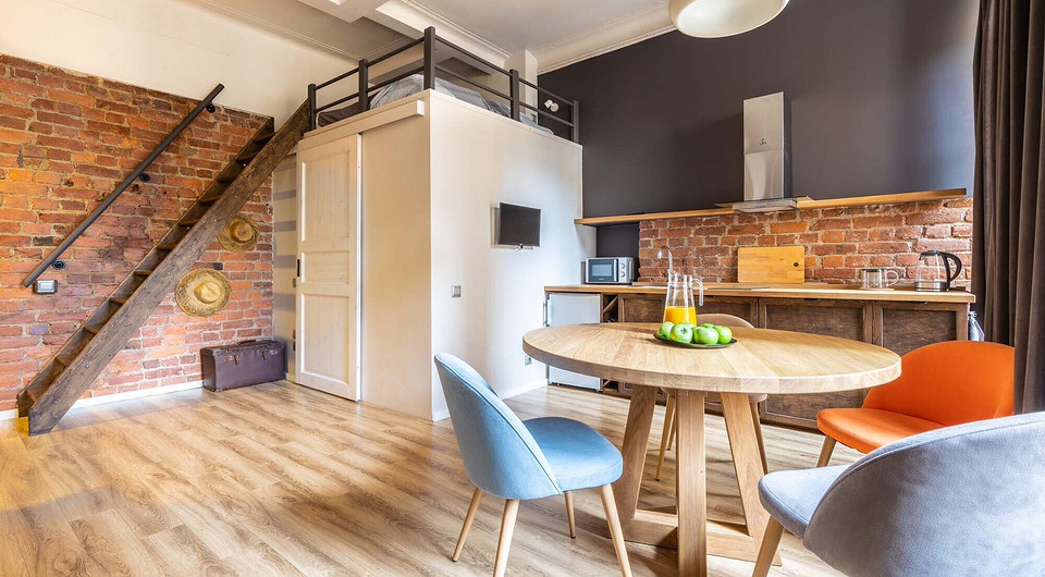 Эта маленькая квартира расположена в доме, построенном в 1914 году. После революции ее превратили в коммуналку, а дизайнерам Ольге Васильевой и Ирине Петровой удалось сделать из «убитой» жилплощади — стильное пространство. Новые владельцы планируют сдавать свою недвижимость в аренду, поэтому требовалось несколько спальных мест. И чтобы не загромождать маленькую площадь (32 м2) мебелью, одну из спален подняли на «второй этаж» — антресоль над ванной.