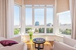 А оставшееся свободным пространство можно заполнить с помощью журнального столика или стеллажа, оставив как можно больше воздуха.