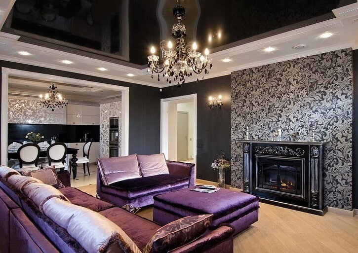 Сам по себе этот дизайн-ход хоть и известен уже многие годы, но так и не стал ультрапопулярным. Тем не менее, если у вас темный потолок в доме, стоит в качестве яркого контраста выбрать активную обивку для мебели, чтобы интерьер получится разноплановым.