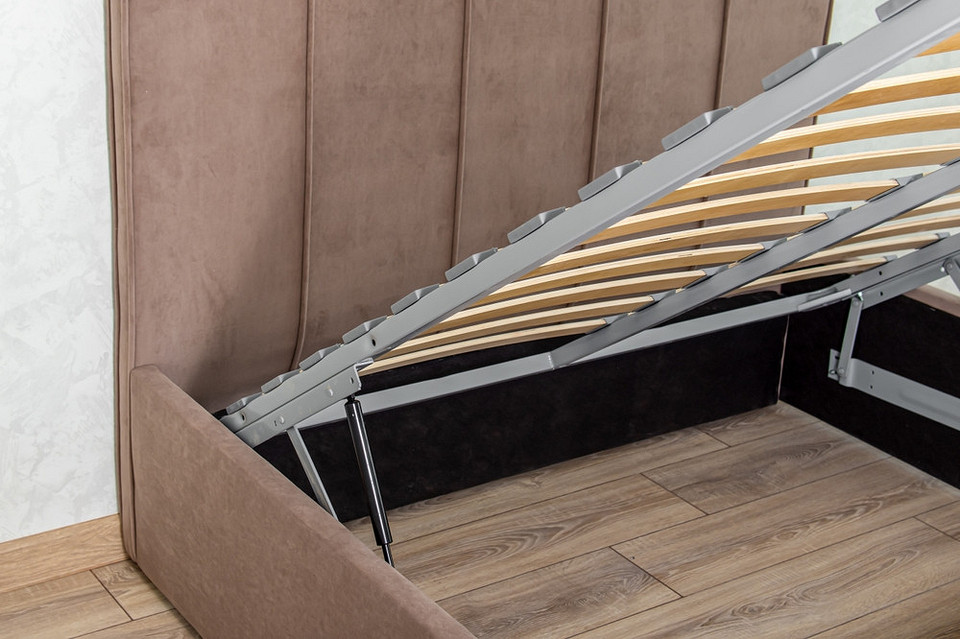 Матрас обычно в комплект не входит. Но без него нельзя опустить газлифт в подъемном механизме кровати. Газовый лифт срабатывает только под большой нагрузкой. Производители даже указывают минимальный вес матраса в инструкции к мебели. Если он легче, вы не сможете опустить основание.