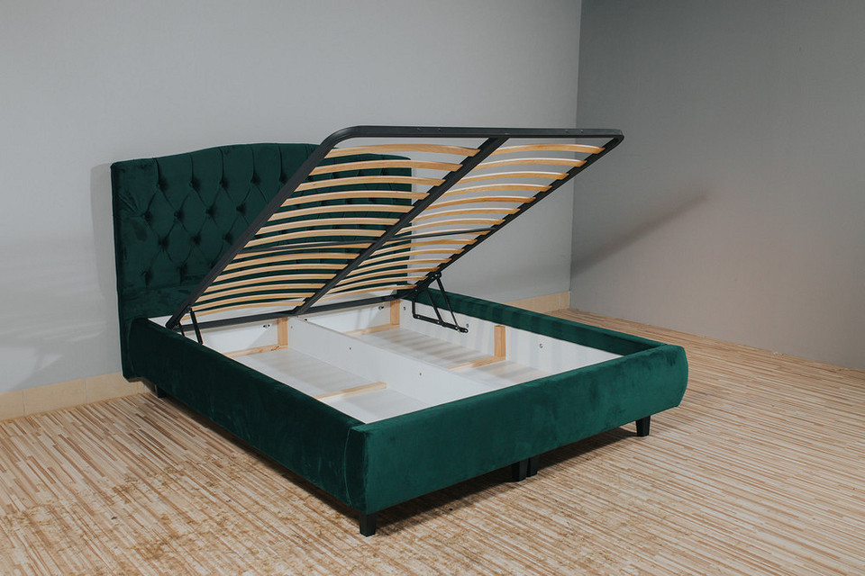 Дополнительно в комплект могут входить тканевый чехол для боковин основания, дно для бельевого ящика, ножки и крепеж для них.