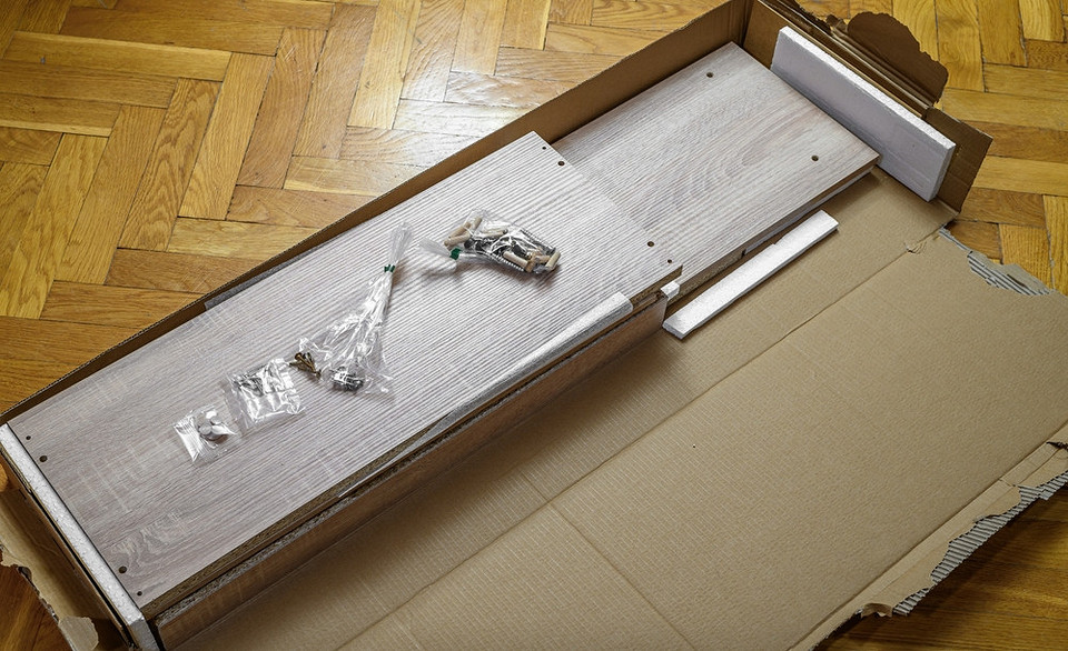 В комплекте со шкафом придет много саморезов, гвоздей, конфирматов и другого крепежа. Сразу разложите их по разным банкам или мискам, пересчитайте и убедитесь, что количество каждого типа соответствует инструкции.