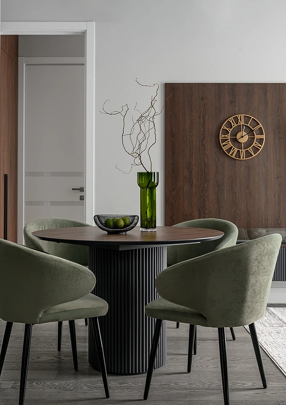В классической стилистике используют одинаковые, симметрично расположенные сидения из одного комплекта. Обивка — замша, велюр или жаккард. В стиле лофт или сканди можно добавить интерьеру яркости, выбрав кресла разного цвета или даже разные модели, сделав тем самым столовую группу интересным элементом дизайна.