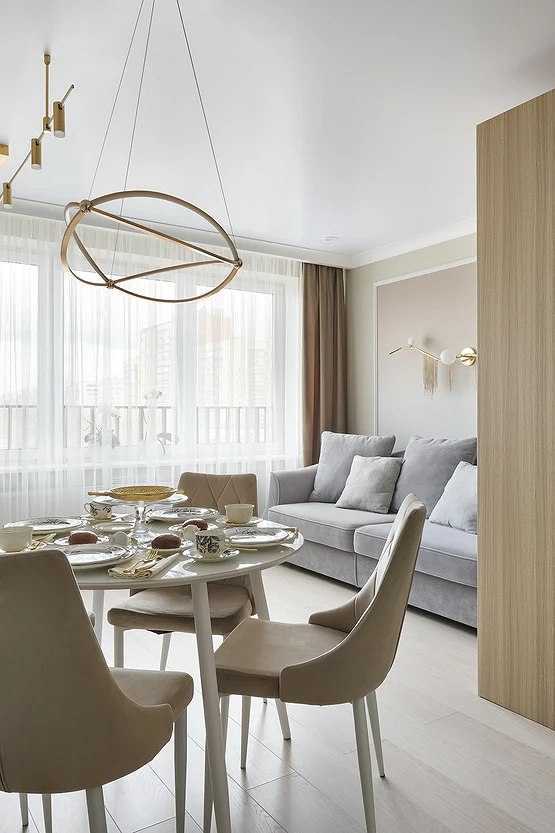 Круглый стол в интерьере кухни и гостиной