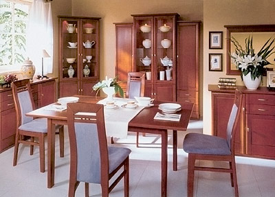 На российском рынке мебели для столовых наблюдается великое многообразие моделей, изготовленных в разных странах мира. Особенно широк ассортимент обеденных групп. Одни производители специализируются на выпуске столов и стульев и предлагают в дополнение к ним лишь два-три вида шкафов (скажем, буфет, витрину и низкий шкафчик). Другие представляют весь спектр корпусной мебели для всех помещений дома: гостиных, столовых, прихожих и пр.- плюс столы и стулья. Третьи предоставляют возможность укомплектовать обеденными группами кухонные гарнитуры.