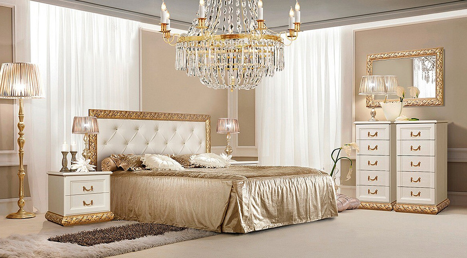 Поистине королевская роскошь — в декоре кровати использованы стразы, каретная стяжка изголовья и на выбор отделка под золото или серебро.
