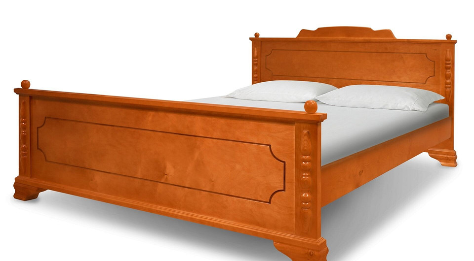 Кровать из массива натурального дерева – в классическом стиле с удобным хранением. Массивное изножье и изголовье с резьбой украшены шарами.