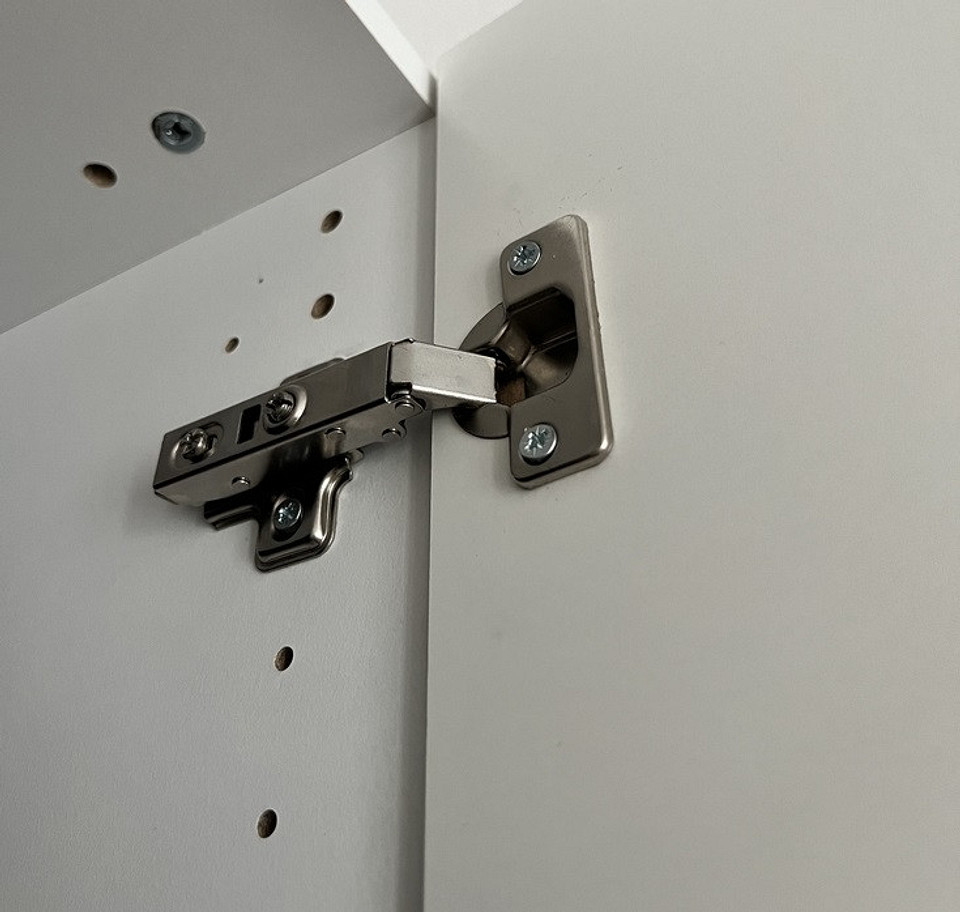 Любая петля — это 2 неподвижные планки и механизм, соединяющий их и одновременно обеспечивающий открывание. Фурнитуру делят на виды по способу крепления планки к фасаду. К стенке шкафа ее чаще прикручивают саморезами, хотя есть и другие варианты.