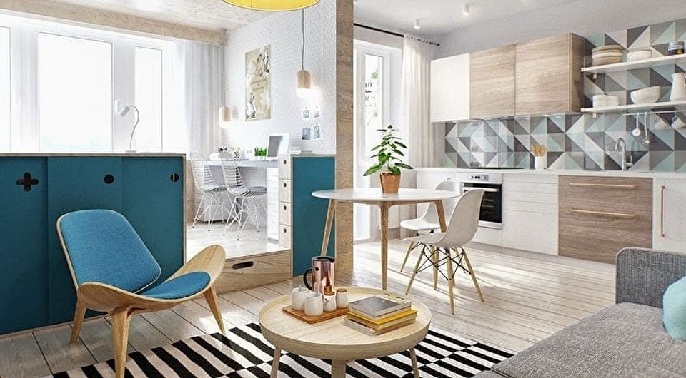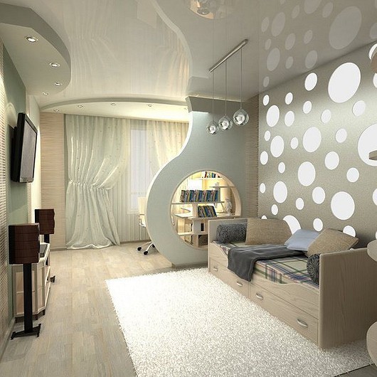 Помещение должно быть разделено на зоны, но при этом иметь общий стиль и цветовую гамму. Маленькую по площади комнатку лучше не загромождать мебелью. Для таких случаев отлично подходит мебель-трансформер. Оригинально смотрятся конструкции, объединяющие разные зоны в одно компактное сооружение.