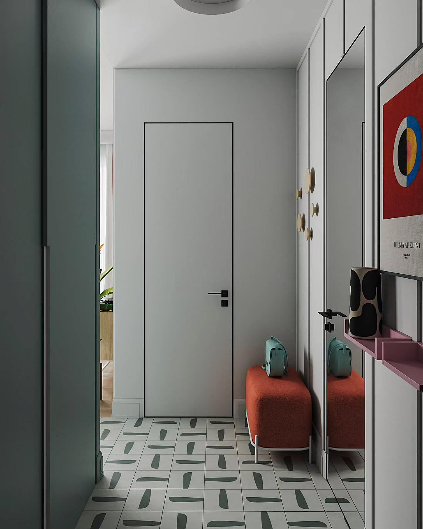 Зеленый — универсальный цвет, который сочетается практически с чем угодно. Благодаря разнообразию тонов (от изумрудного до мятного или оливкового) можно создать в прихожей любое настроение, сформировать более теплую или холодную палитру. Независимо от оттенка сейчас в тренде матовые зеленые поверхности. На них цвет смотрится глубже и богаче, не бликует и больше подходит для небольшого пространства.