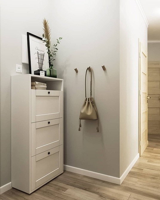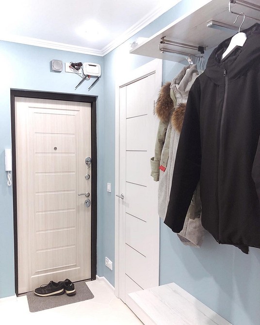 Поскольку метраж ограничен, вместить все вещи в крошечную прихожую не получится — что-то придется хранить в других комнатах.