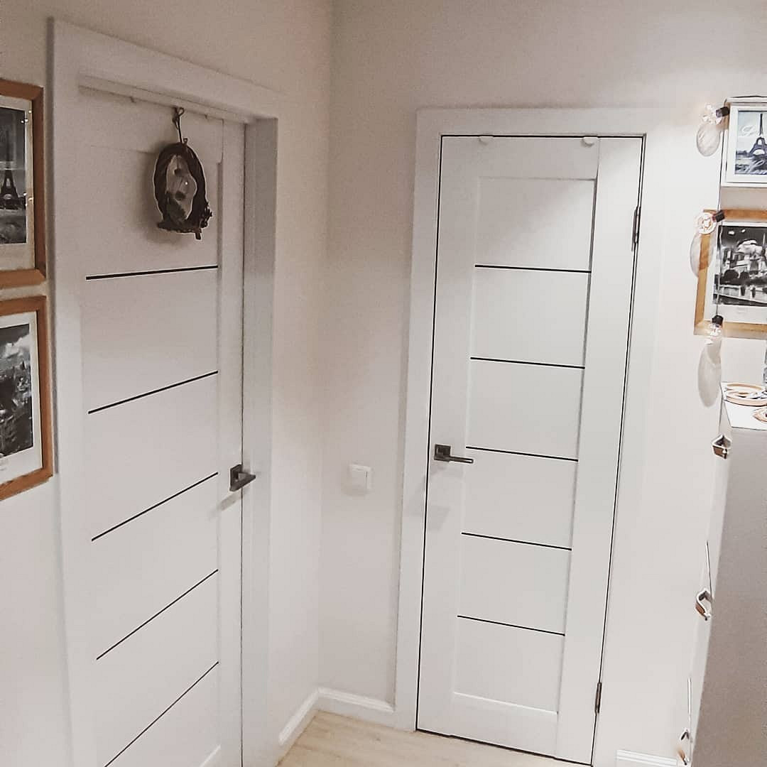 Помимо входной двери, установили еще и межкомнатную — между ними образовался мини-тамбур, который создает воздушную подушку. Как пишет хозяйка квартиры в своем блоге, решение спорное: с одной стороны, получилась отличная звукоизоляция, с другой — на эту конструкцию ушло целых 80 см, которые для маленького помещения очень важны.