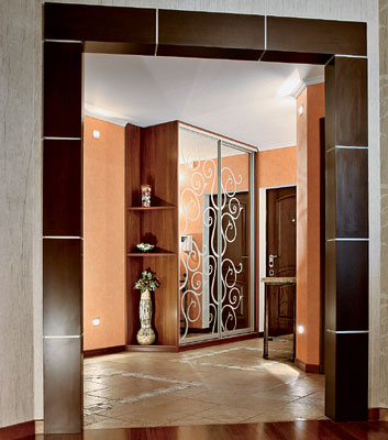 95. Если роль ростовых зеркал несут дверцы шкафа, то подкраситься можно на свету, глядя в маленькие зеркальца, вмонтированные в декоративное панно.
