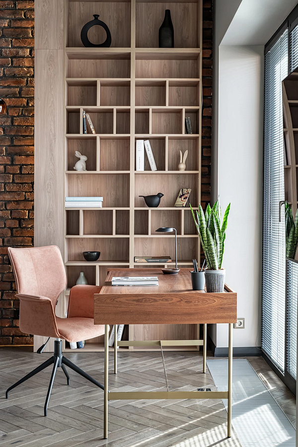 Эта квартира принадлежит холостому мужчине и оформлена на стыке лофта и контемпорари. Мебель и хранение подобраны в соответствии с общей концепцией. Здесь есть несколько закрытых систем, которые выполняют в первую очередь функциональные задачи. Но в спальне-гостиной дизайнер предусмотрела эффектный книжный стеллаж, который визуально зонирует рабочее место. На полках поместятся и домашняя библиотека, и отдельные предметы декора. А масштаб — стеллаж доходит до потолка — сам по себе привлекает внимание.